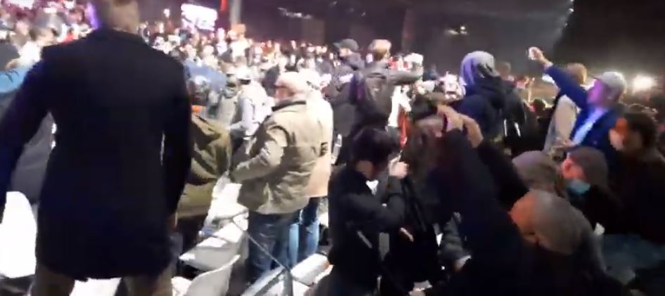 Aceşti oameni au primit lovituri şi au fost vizaţi de scaune aruncate de alţi participanţi la miting, potrivit unei înregistrări video difuzate de asociaţia antirasistă. Cinci persoane au fost rănite, două dintre ele fiind preluate de pompieri, potrivit aceleiaşi surse.