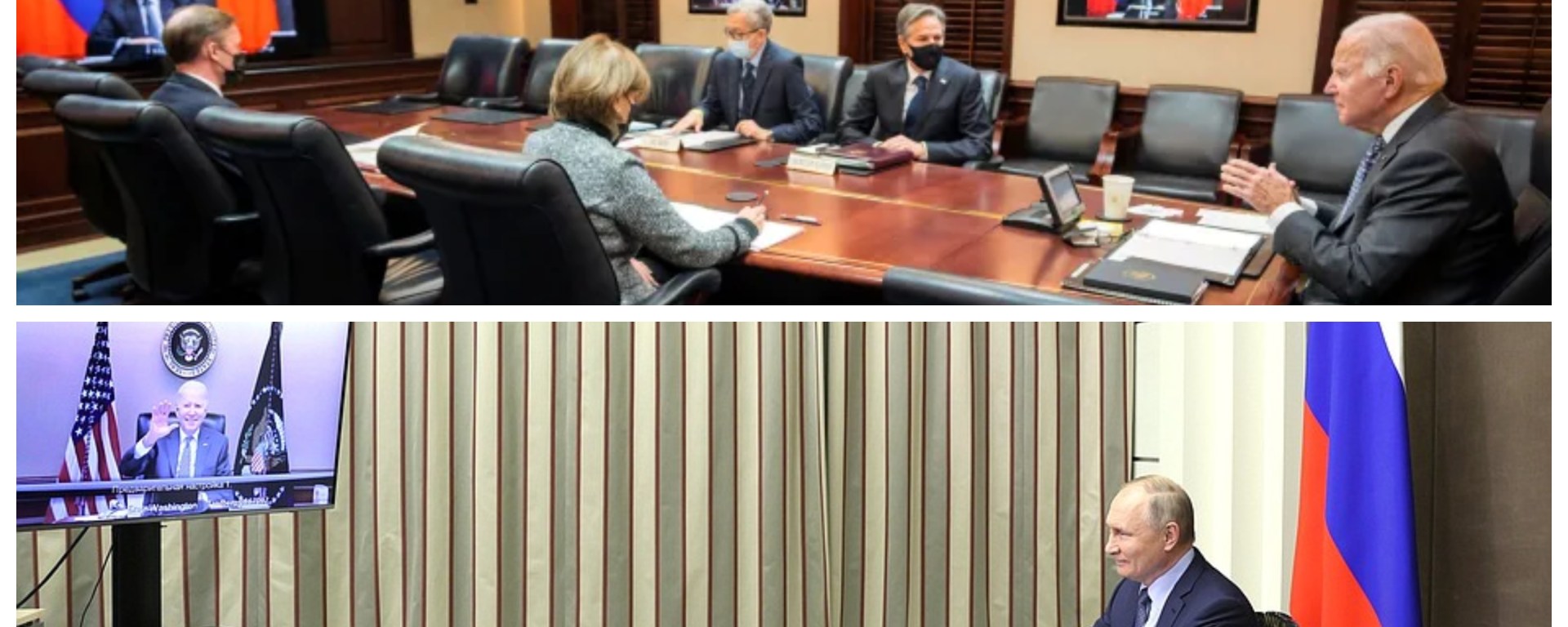Videoclipul îl înfățișează pe domnul Putin așezat la un birou lung, de lemn, cu domnul Biden pe un ecran video mare, în fața sa, și făcându-i cu mâna domnului Biden în debutul apelului. Domnul Putin a preluat apelul de la reședința sa din Soci, orașul stațiune rusesc de la Marea Neagră.