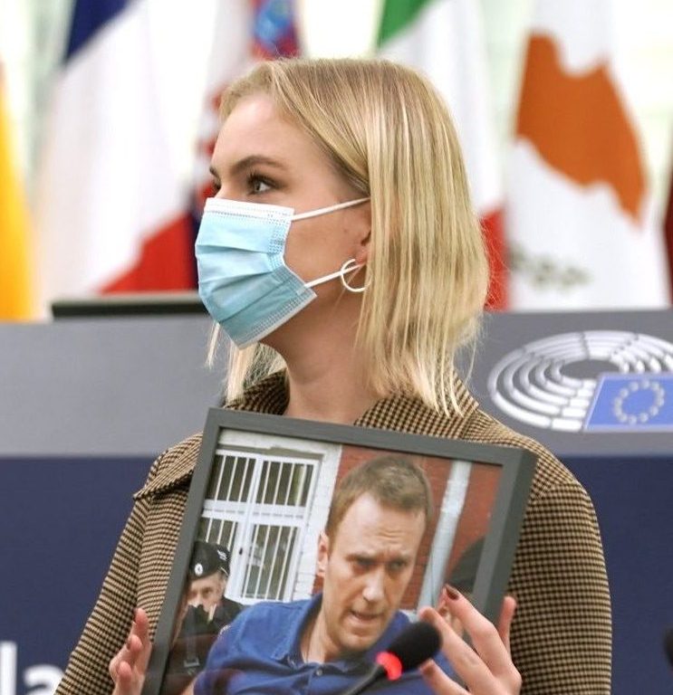 Navalnaia: I-am cerut asta. I-am scris: Trebuie să înțelegi, te rog, că acesta este Parlamentul European, până la urmă, am doar 20 de ani și nu sunt obișnuită cu astfel de lucruri. El a răspuns: Vorbește din inima ta! Acesta este un sfat excelent, dar cum nu ținusem niciodată un discurs important în fața membrilor parlamentului, nu era un sfat grozav pentru mine. Așa că, i-am scris din nou și i-am spus: Să trecem prin asta punct cu punct. Ce ar trebui să spun și ce să nu spun? A fost discursul meu, dar el s-a uitat la el și l-a aprobat. Și sunt încântată, desigur, că m-a desemnat să primesc premiul în numele său.