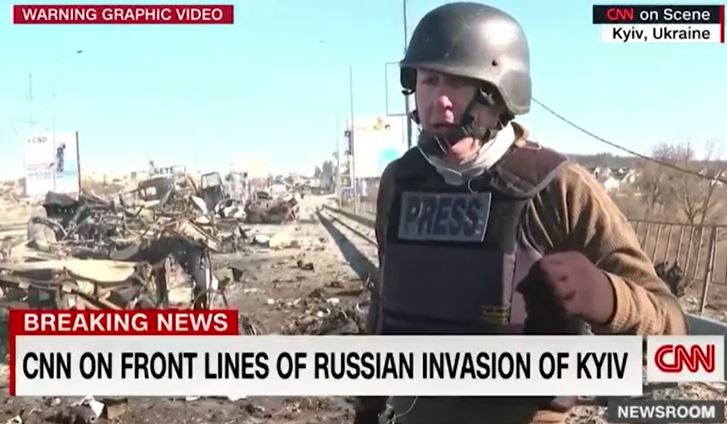 Matthew Chance, de la CNN, a prezentat lumii ce a rămas în urma unei bătălii de pe un pod din afara Kievului. Cadavrele militarilor ruși uciși încă zăceau pe caldarâm, lângă camioanele distruse de loviturile ucrainene.