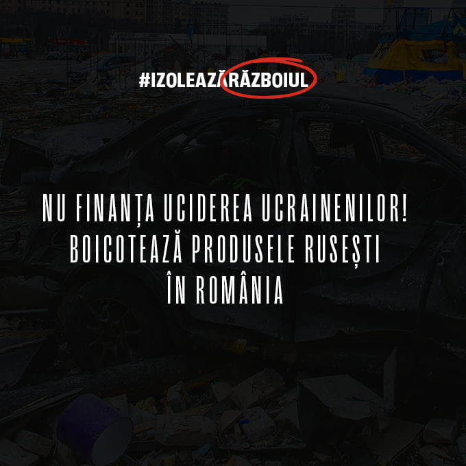 În acest context, ambasada ucraineană promovează site-ul www.stoprusia.ro, care conține lista societăților rusești active în România. „Apelăm la cetățeni și comunitatea internațională să se alăture boicotului companiilor rusești în România”, mai arată postarea.