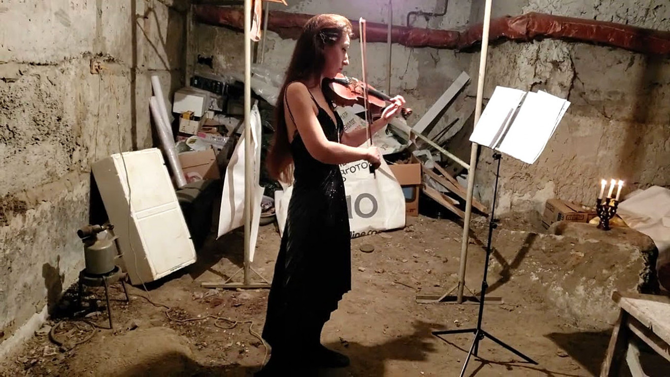 Să-și ajute țara prin muzică este și scopul Illiei Bondarenko, în vârstă de 20 de ani, care s-a filmat într-un adăpost interpretând un cântec popular ucrainean, „Verbovaia Doscecika”, la vioară.