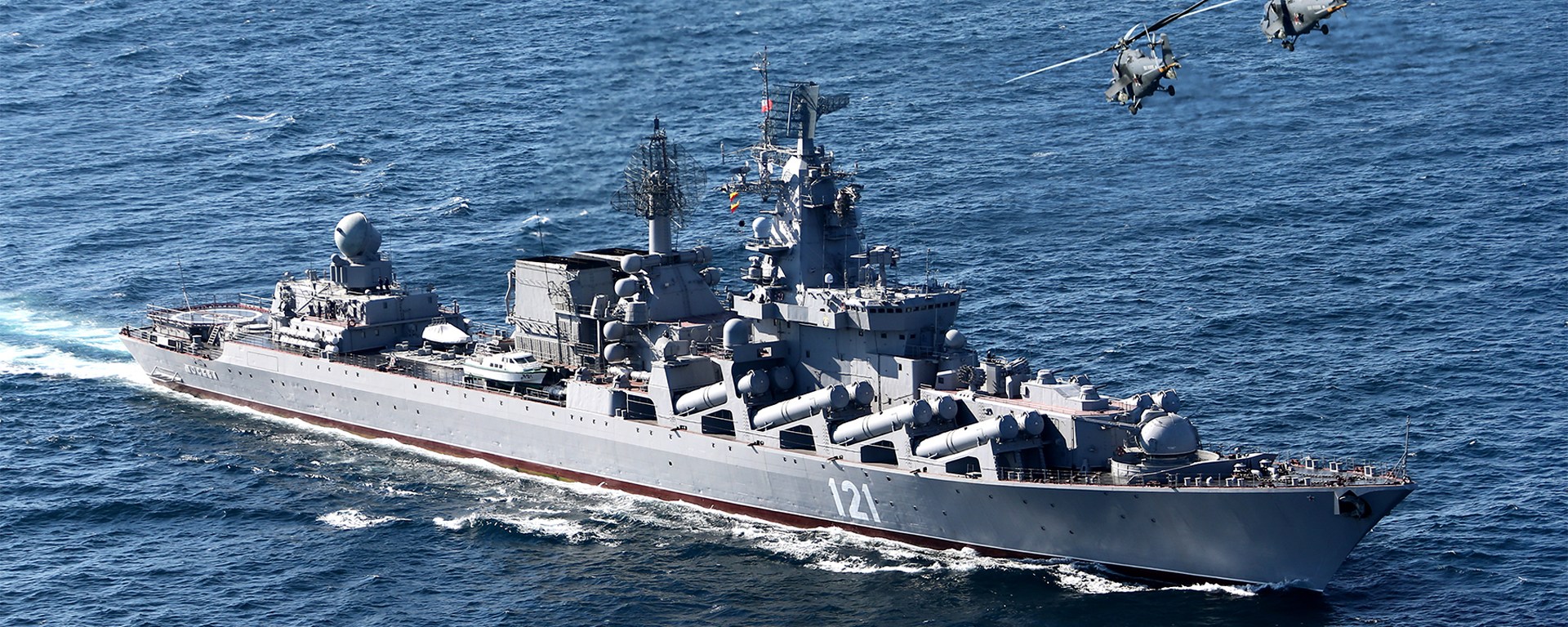Crucişătorul Moskva, ce are o lungime de peste 180 de metri, a fost lansat în 1979 şi şi-a început misiunile în 1983. Nava a fost utilizată pentru a lansa rachete asupra teritoriului ucrainean.