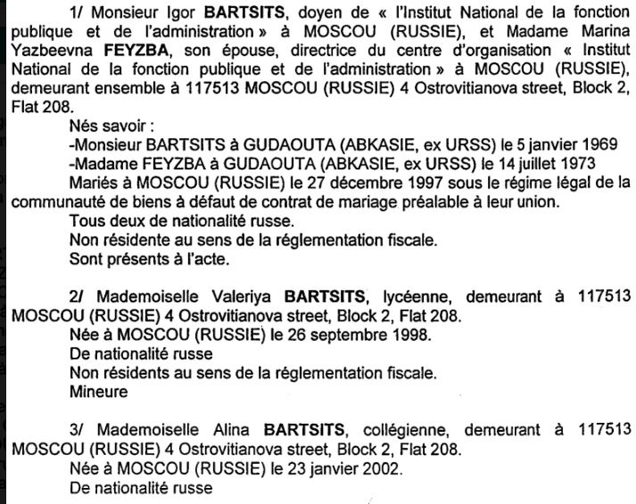 Interesant este că apartamentele din Cannes, cumpărate de fostul prorector și actual decan al IGSU, Barțiț, de află la doar 10-13 minute de vila prorectorului și șefului IBDA, Serghei Miasoedov. Potrivit mai multor surse din RANEPA, el și Barțiț erau prieteni destul de apropiați.