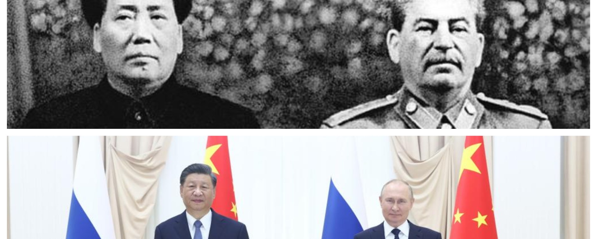 Din Iadul în care-și face duș cu smoală, primul Mao, cel real și umilit de primul și realul Stalin, începe să fie răzbunat: azi, al doilea Mao, copia Xi Jinping, îl umilește pe al doilea Stalin, copia Putin. China devine vioara întâi în binomul otrăvit în care o Rusie obsedată de a fi „suverană” față de Occident și-a găsit refugiul căzând în groapă, sporindu-și tectonic dependența de China. Iar în relația personală dintre dictatorii de pe cei doi poli ai autoritarismului bolnav, azi e chinezul în poziția de a-l ține la ușă pe rus. Iar rusul de azi (Putin), spre deosebire de rusul de sovieticul de ieri (Stalin), dă măsura slăbiciunii supreme, nemaifiind în stare să analizeze fecalele chinezului, ci doar pe ale sale (sursa originală, Paris Match – AICI; câteva preluări – AICI, AICI, AICI).